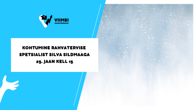25. jaanuaril kell 15.00 toimub Viimsi Noortekeskuses vestlus rahvatervise spetsialist Silva Sildmaaga. Kohtumisel arutletakse, millega tegeleb rahvatervise spetsialist ning millest alustada ja kuidas edendada tervislikke eluviise noorte seas. Osalemiseks on vaja tegevusse registreerida lehel bit.ly/viimsijaan
