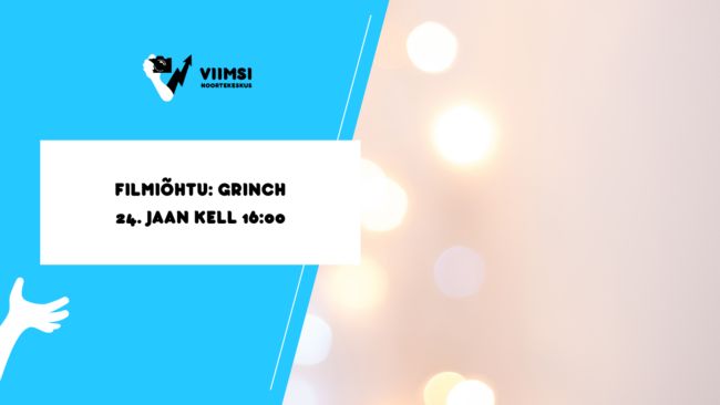 24. jaanuar kell 16.00 toimub Viimsi Noortekeskuses filmiõhtu. Filmiõhtul vaadatakse filmi “Grinch” ning toimub Kahoot!. Osalemiseks ei ole vaja end tegevusse registreerida.