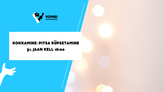 31. jaanuar kell 16:00 toimub Viimsi Noortekeskuses kokkamine. Noore juhendamisel ning lähtudes retseptist küpsetatakse pitsat. Osalemiseks registreeri end tegevusse lehel https://tinyurl.com/pitsajaan